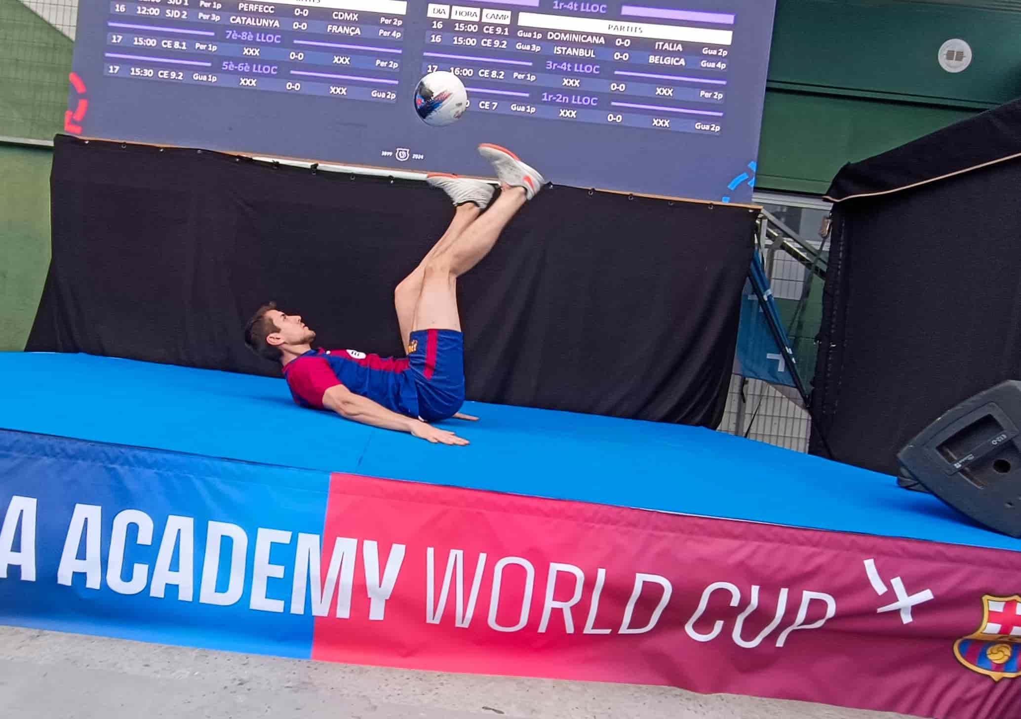 Jose Ferreras realizando un espectáculo de freestyle fútbol en Barcelona durante la Barça Academy World Cup