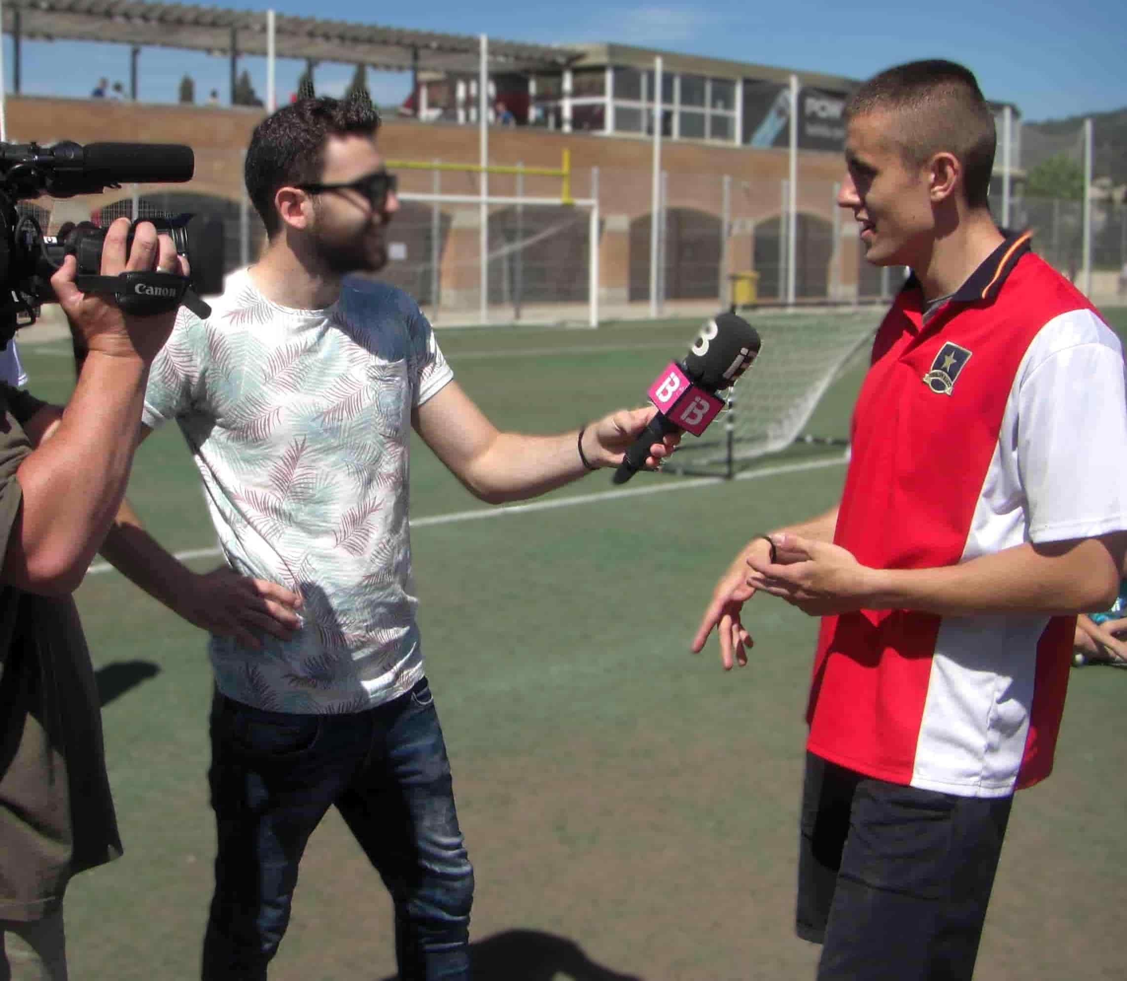 Jose Ferreras, entrenador de tecnificación de fútbol, siendo entrevistado en Barcelona sobre su método de entrenamiento de alto nivel.
